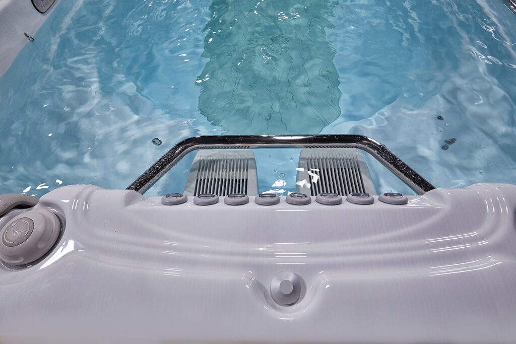 - Rutschfeste Sicherheitsstufen im Inneren des SwimSpas
