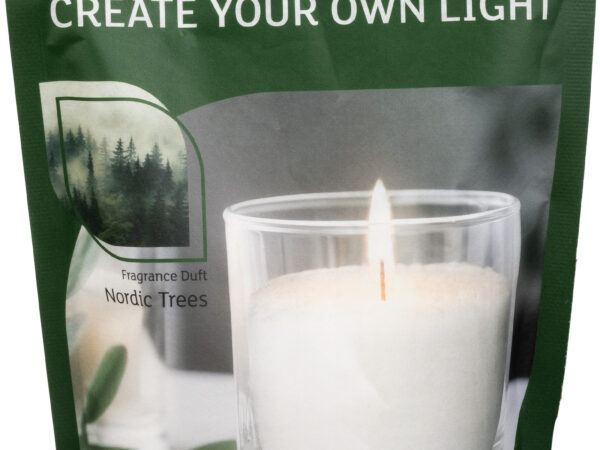 WENZEL Kerzengranulat 400 g Nordic Trees ist ein hochwertiges Duft-Wachsgranulat zum Selbermachen von Kerzen. Das Set enthält 400 g Granulat sowie passende Dochte und Halter.